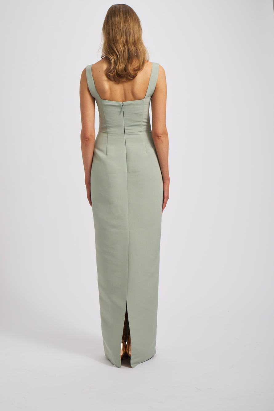 Cut from our gorgeous Faille fabric, the Annie featuring a square neckline, wide straps and delicate bow detail on the bodice, and a straight skirt which gives the gown a sleek and modern feel. You are sure to feel delicate and refined while wearing this beauty.