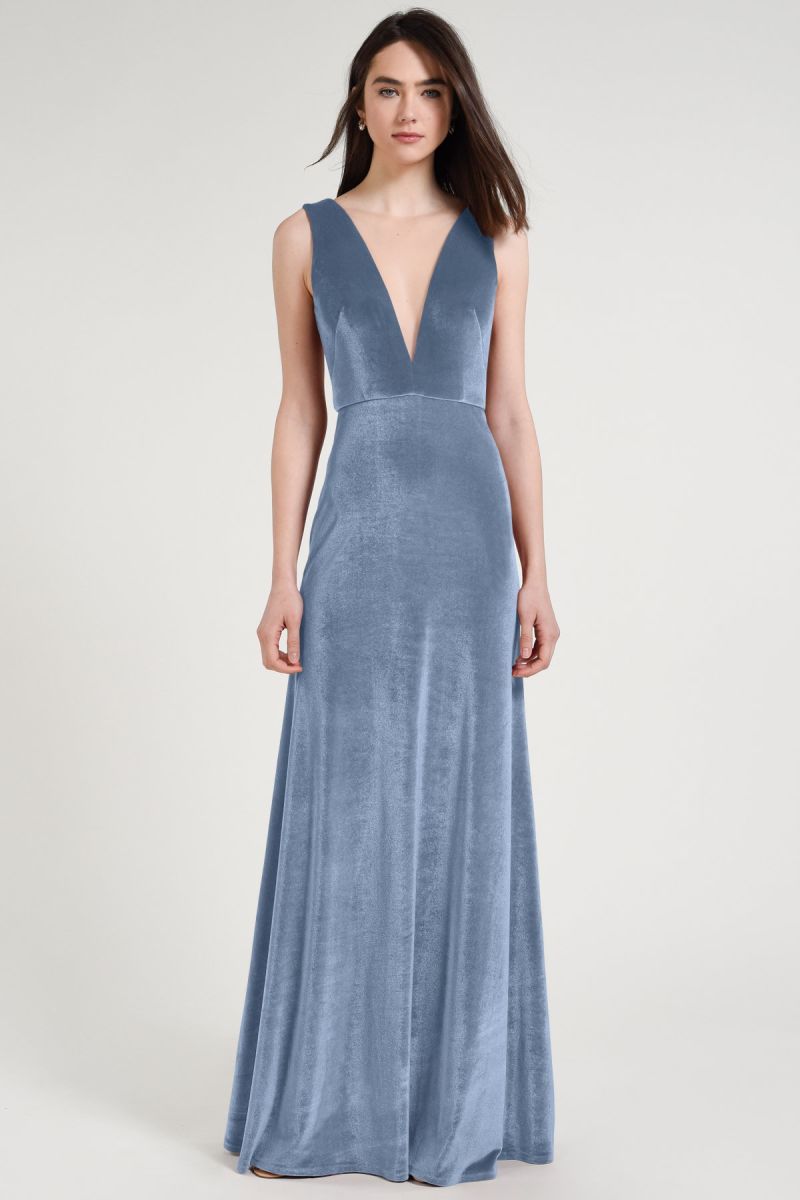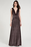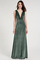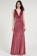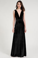 The luxurious Logan dress sets the bar with its daring deep V-neck and stylish A-line skirt cut in our soft Stretch Velvet fabric, making it a favored choice for anyone seeking a stunning look.