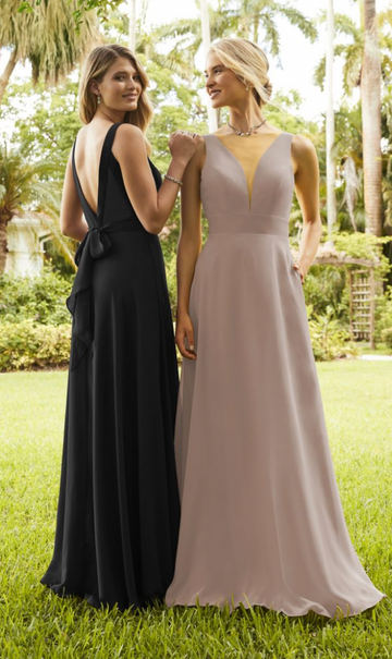 We suggest ordering bridesmaid dresses at least six months before the wedding. No matter which dress or designer you choose, you’ll need to allow ample time for the dress to be made as well as time for fittings and alterations. Some designers offer rush orders, but when they do, they also charge rush order fees.