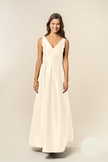 Traditionally, bridesmaids wear dresses! They can be short or long, knee length or midi, and they can be any color, fabric, and silhouette you like. Bridesmaid dresses have long been the wedding standard, but bridesmaid jumpsuits are a chic and modern option as well!
