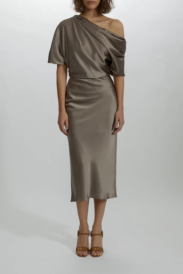 Amsale Bridesmaid Dress P434S - Draped Midi Dress