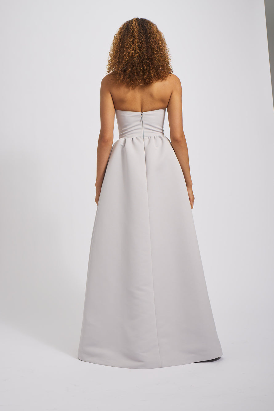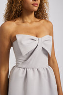 Say hello to the Abby bridesmaid dress in our classy structured Faille fabric. Featuring a strapless neckline to showcase your collarbones, a chic bow bodice, and gathered A-line skirt, this dress has an air of sophistication that is perfect for any wedding party.