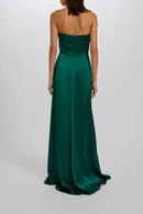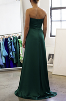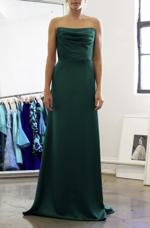 The Jara A-line dress takes a classic strapless gown and elevates it with a beautiful draped bodice detail in Fluid Satin making it the perfect choice for any bridal party.