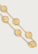 Crafted from 18k gold-dipped brass, this bracelet is adjustable in length and showcases coins adorned with Anabel Aram's distinctive butterfly motif. It's a subtle and dazzling addition to your collection of jewelry.