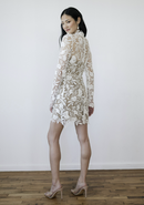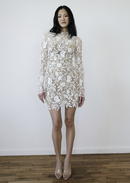 Crafted in exquisite ivory cari chemical lace, the Samari Little White Dress exudes modern sophistication. With a high neckline and long sleeves, it offers both elegance and modesty. The short length and natural waist ensure a flattering silhouette, making it a the perfect choice for the fashion forward bride. Available in sizes 00-32