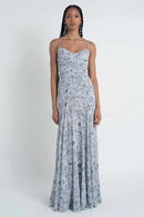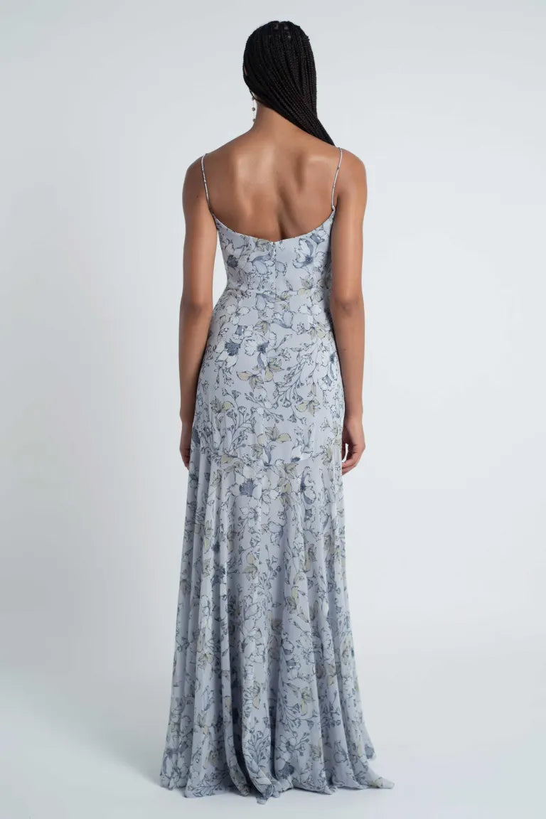 Meet the Keely bridesmaid dress, a simple yet fun style suitable for various occasions. Cut in our Sahara floral printed chiffon fabric, the dress features a sweetheart neckline with delicate spaghetti straps, and a slim A-line skirt that provides flowy movement.