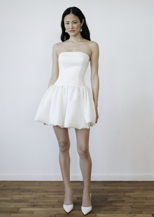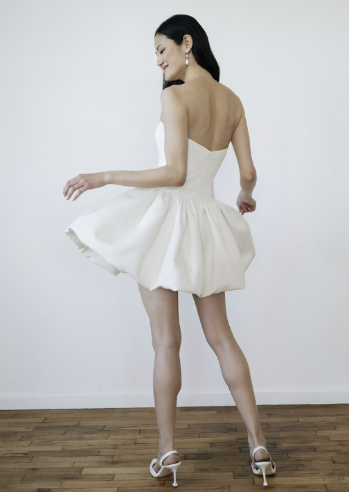 Say hello to the Tinsley Little White Dress: a charming blend of feminine and flirty allure. This strapless gown features a drop waist silhouette that accentuates the figure with playful elegance, open back and a flouncy short bubble skirt crafted from ivory luxe faille, ensuring you'll dance the night away in style. Available in sizes 00-32