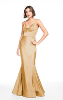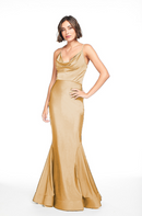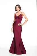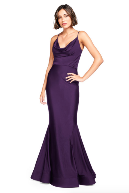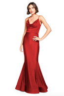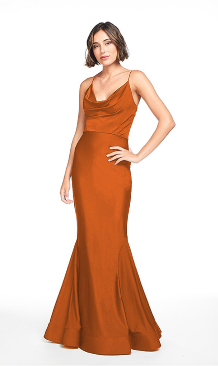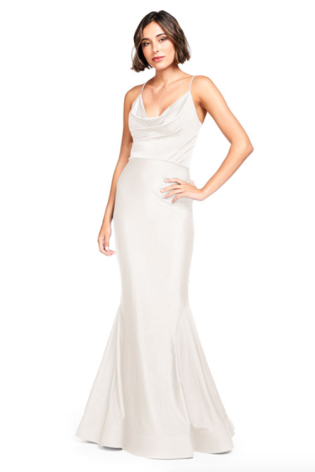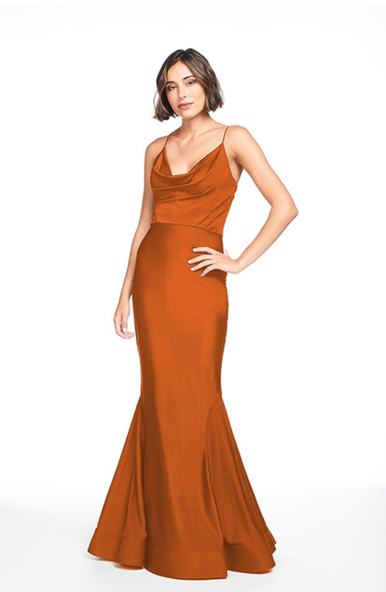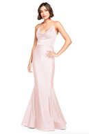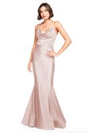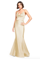 Bari Jay Bridesmaid Dress 2007 - Spaghetti strap cowl neck bodice with a mermaid skirt and a horsehair hem. 4-way Stretch for an effortless fit. This style includes self knee length lining.