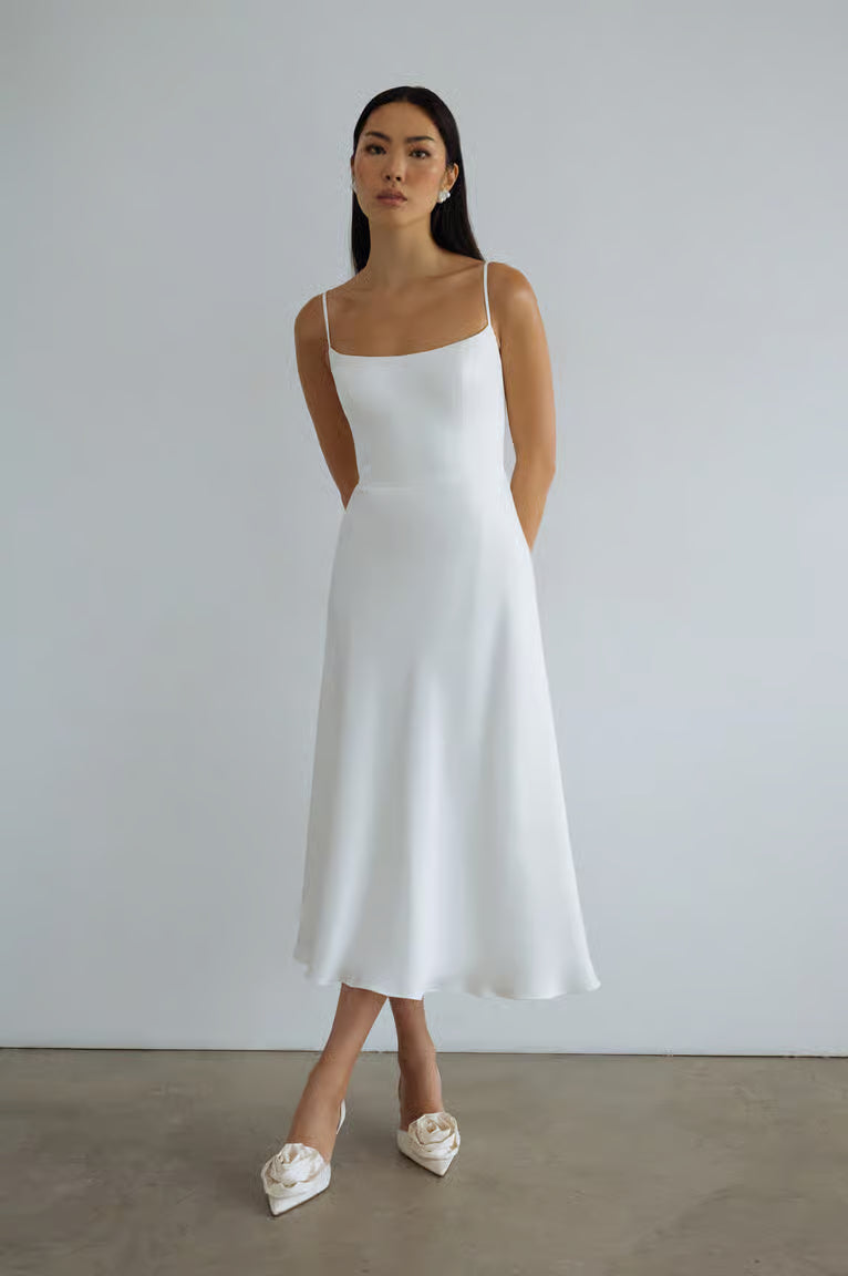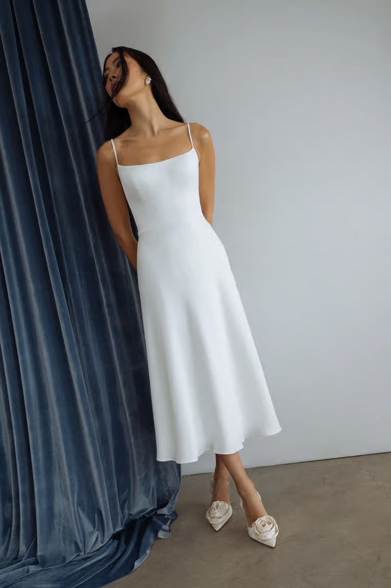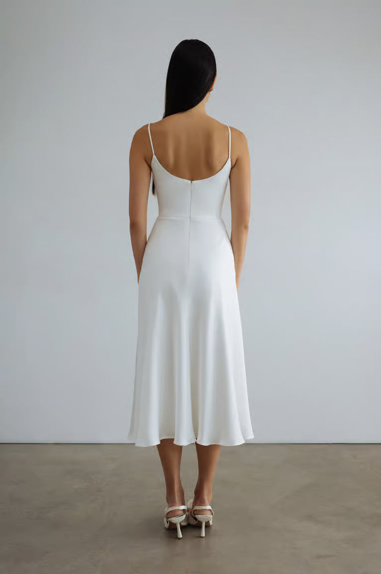 The Callie dress is a take on our forever favorite Callista dress, back with a new and improved fit. A higher back neckline offers a structured, supportive fit through the classically styled bodice.
