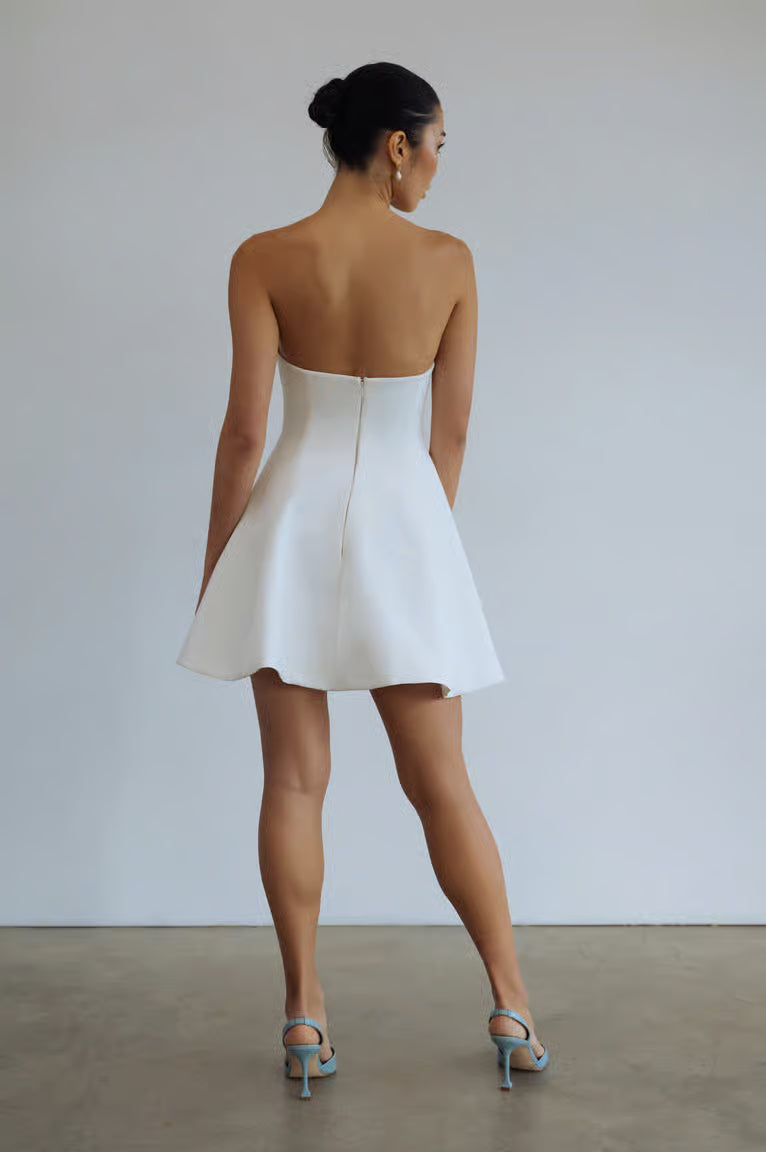 The Judy dress perfectly walks the line between flirtatious and sophisticated. With her twirly skirt and elegant arched neckline, she is classic yet striking.