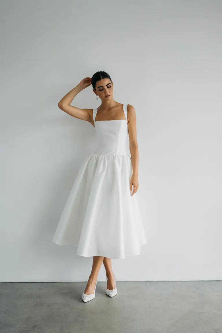 Luxe taffeta available in light ivory and dark ivory, Available in sizes 00-32