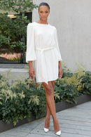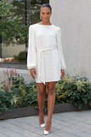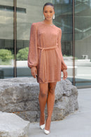 Crafted from our dazzling stripe sequin fabric, the Angie dress features dramatic balloon sleeves to captivate attention and comes with a detachable self-sash that offers versatility when it comes to styling options, allowing you to wear it either as a blouson or a chic sheath silhouette.