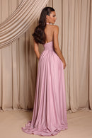 The Ivy Gown is made from stretch jersey and features a halter neckline with a plunging front and fitted waistband to define the silhouette. The soft, gathered skirt flows elegantly to the floor, creating a graceful and timeless look ideal for bridesmaids or formal occasions.