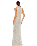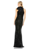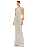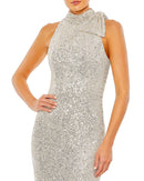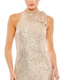 SEQUINED SOFT TIE HALTER NECK COLUMN GOWN