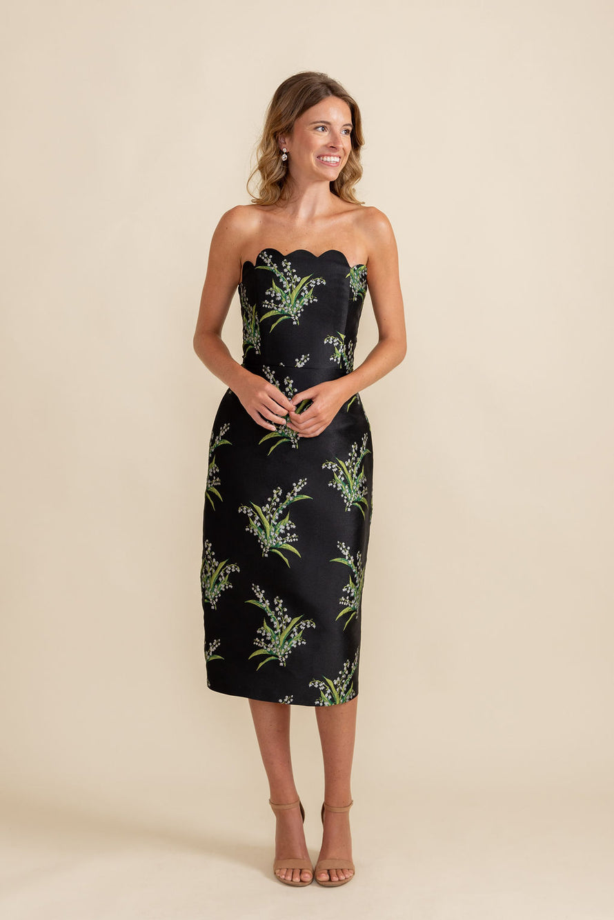 Hayes Bodice with Straight Skirt Midi in Jacquard - Lily of the Valley