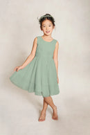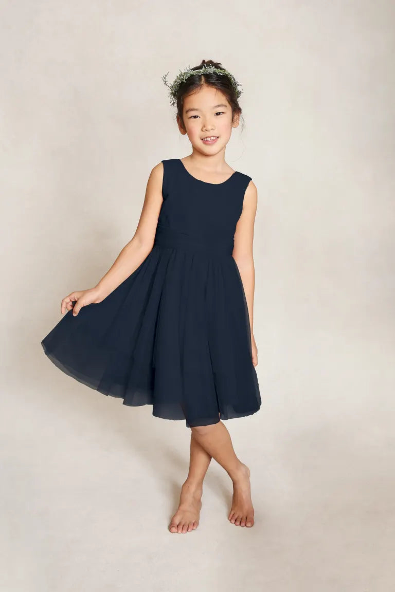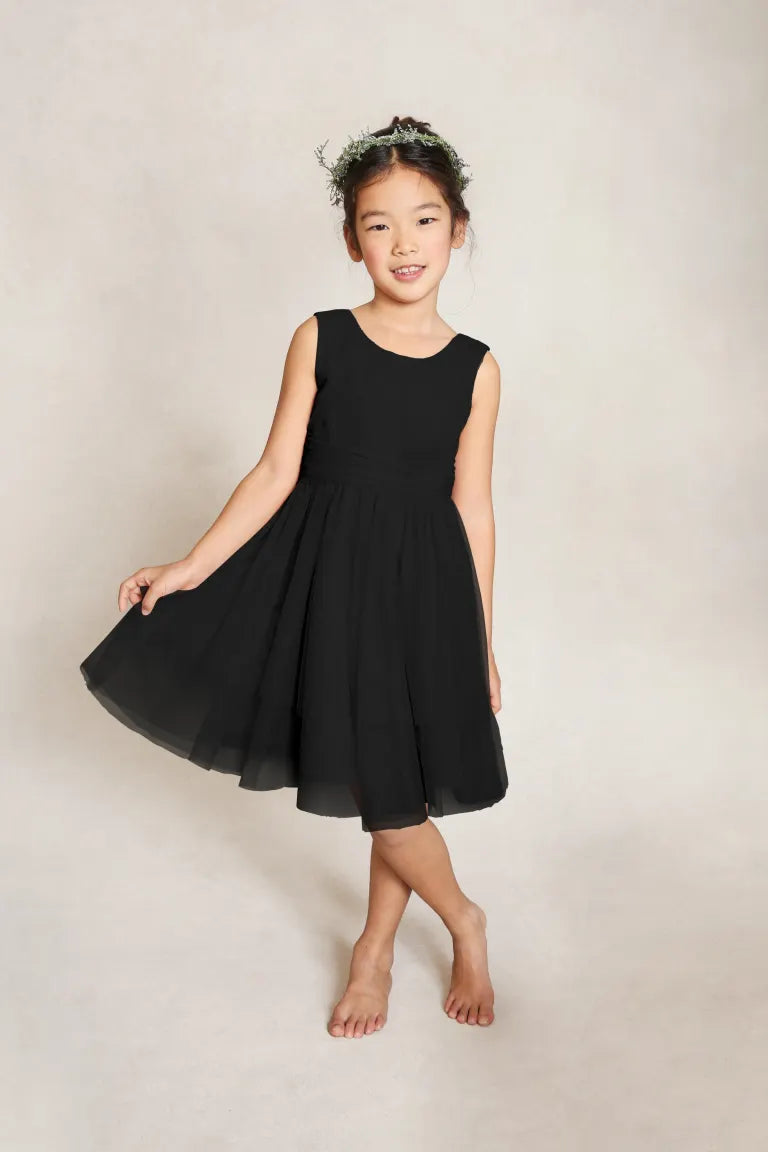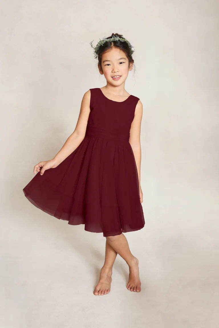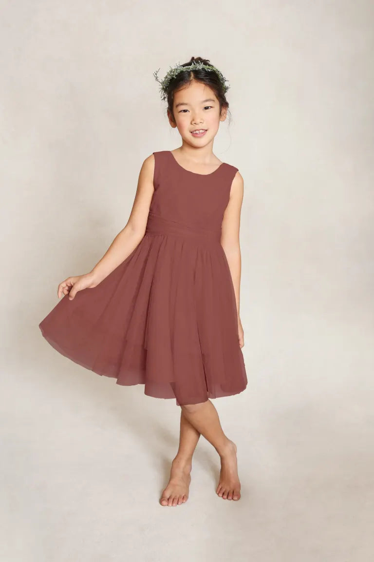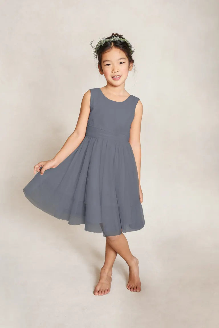 The Etsy tulle flower girl sleeveless dress showcases a jewel neckline, a double-layered full skirt, and a daintily gathered waistband that can be tied at the back. It comes in several colors too!