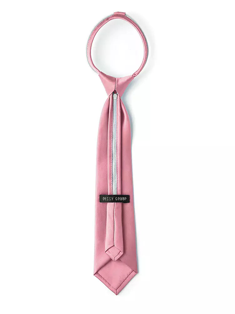 Boy's Matte Satin Zip Necktie by After Six. The unique design of this boy's zip tie means he'll always have a perfect knot, and makes it easy to put on or take off. It's a classic tie style for any dress-up occasion, ideal for perfectly color-matched wedding parties.