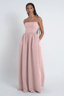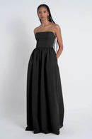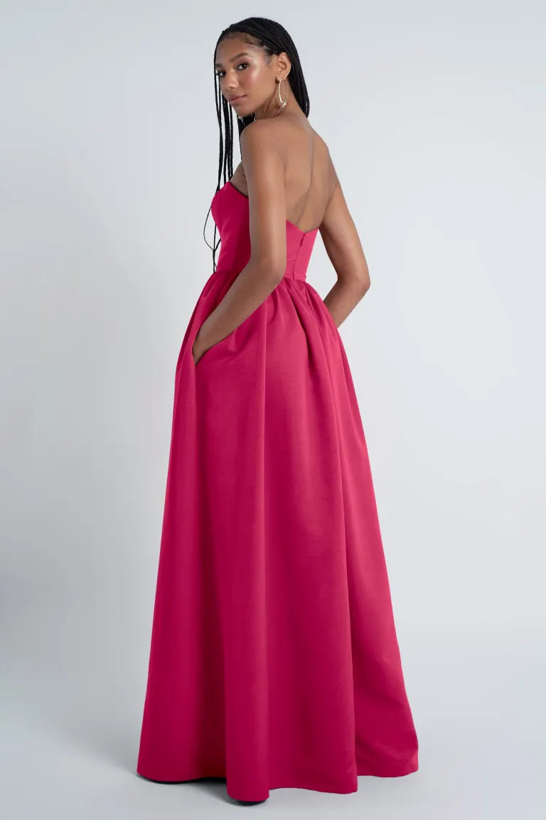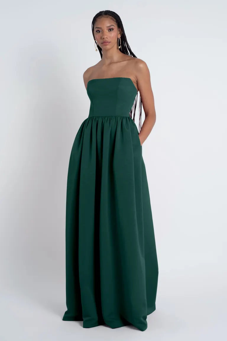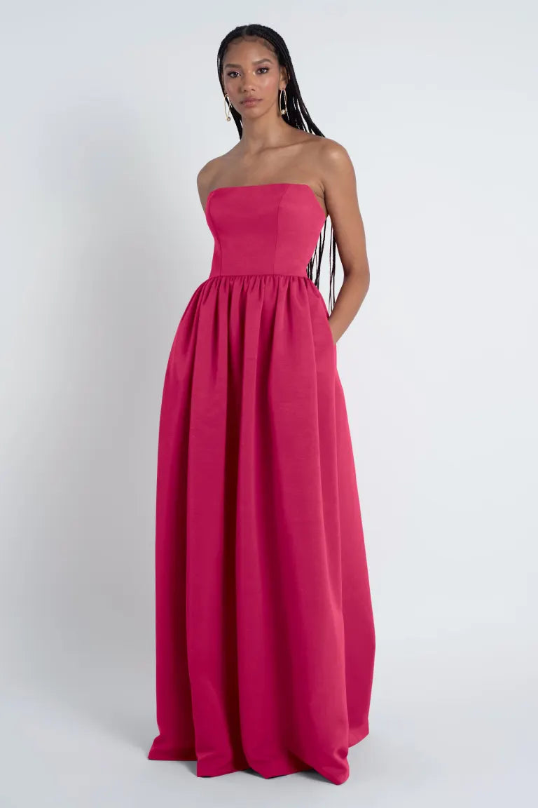 Cut from our textured Luxe Faille fabric, the Laney dress offers a stylish straight neckline, boning in the bodice and a full, gathered skirt complete with side seam pockets. This dress is chic and perfect for any event.