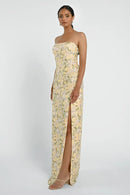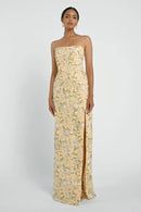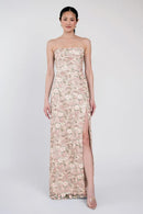 The Mercy dress is a sleek new addition to one of our favorite fabrics, our intricately embroidered enchanted floral tulle. She features a modern straight neckline, a fully boned bodice for a great structure and fit, and an alluring slit for just a peak of skin.