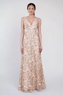 The Tatum V-neck bridesmaid dress features wide straps, a fitted bodice and a slim A-line skirt. Cut in our intricately embroidered enchanted floral tulle fabric, this style is classically romantic.