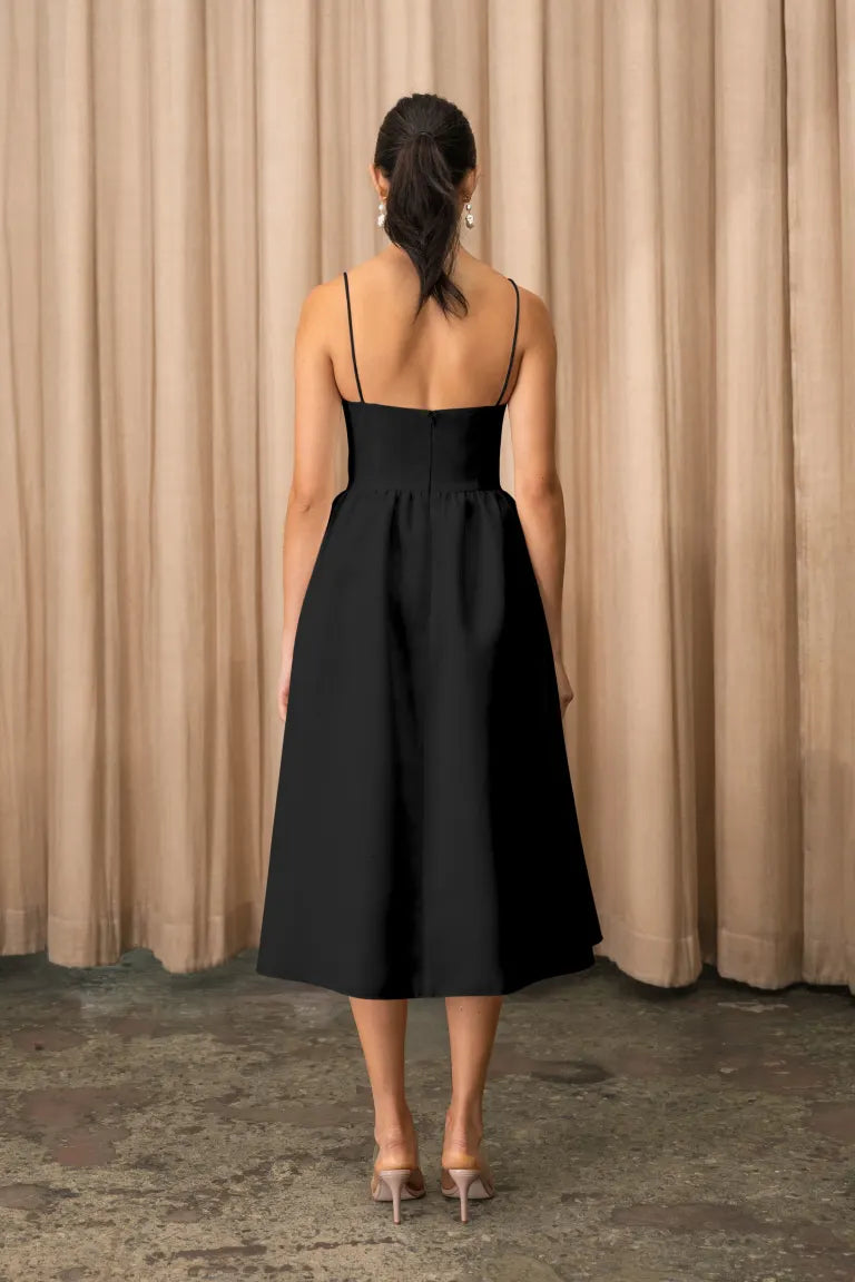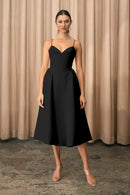 The Luella dress adds thoughtful seam details to a classic silhouette. Cut in our classic luxe faille, she features delicate spaghetti straps, a flattering deep sweetheart neckline, modified front drop waist, and flirty full skirt.