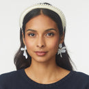 The chic Gigi headband is hand-embellished with a line of faux pearls on ivory velvet.