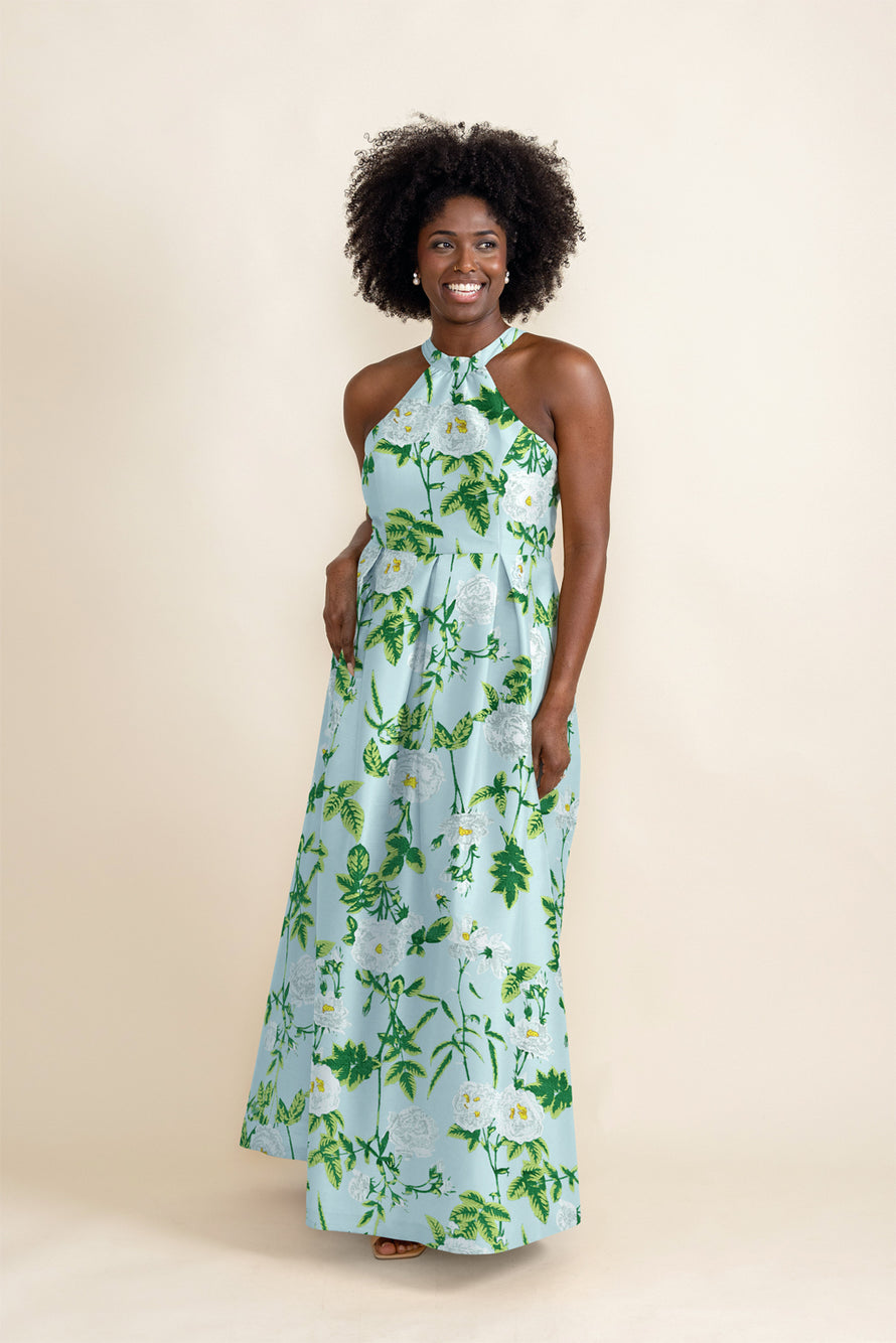 Abby Bodice with Dahlia Skirt Floor in Camellia Jacquard