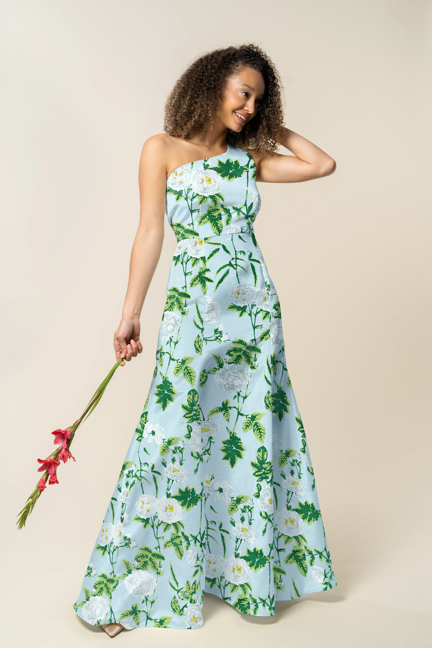 Cason Bodice with Trumpet Skirt in Camellia Jacquard