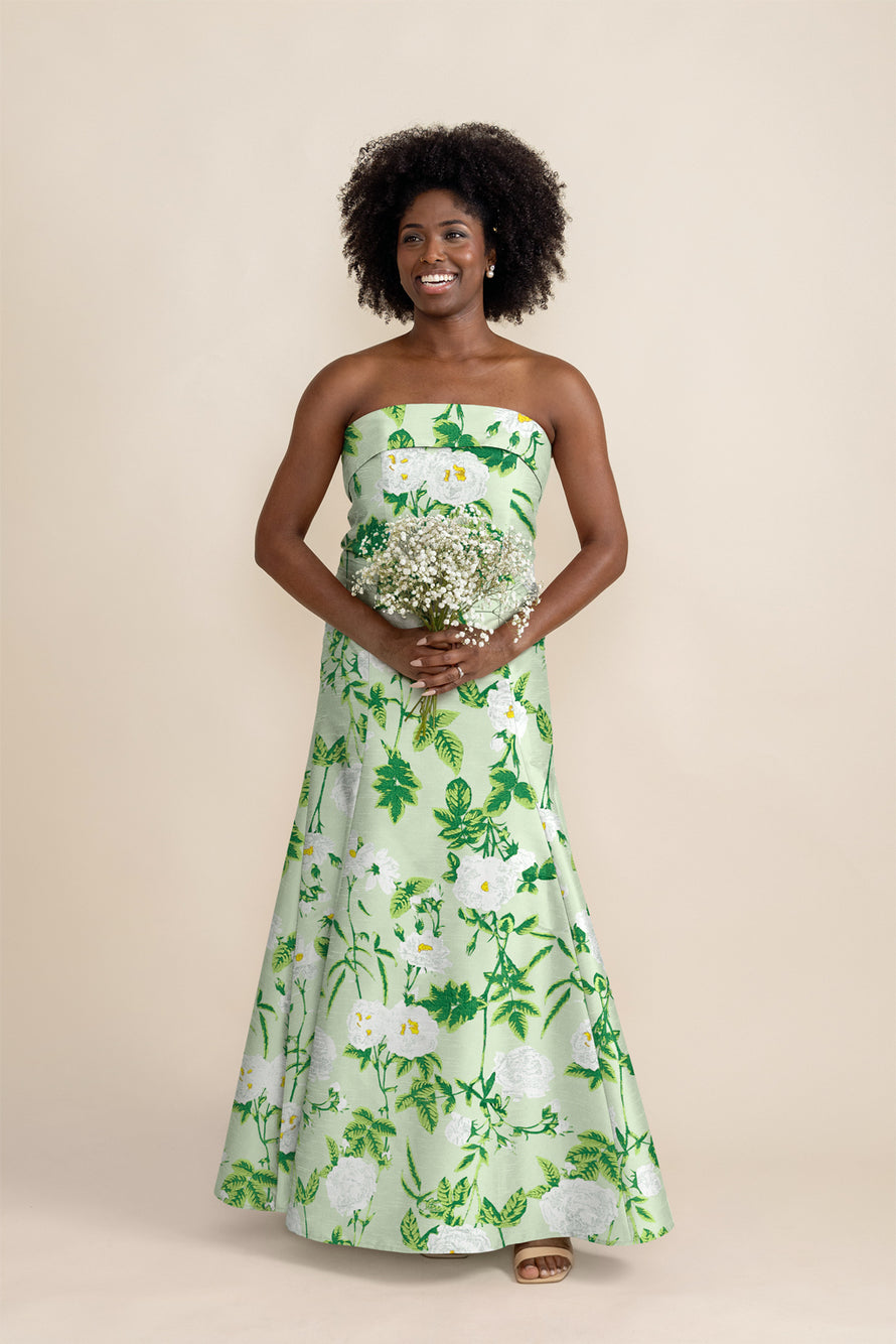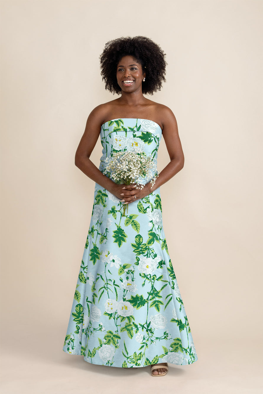Eva Bodice with Trumpet Skirt in Camellia Jacquard