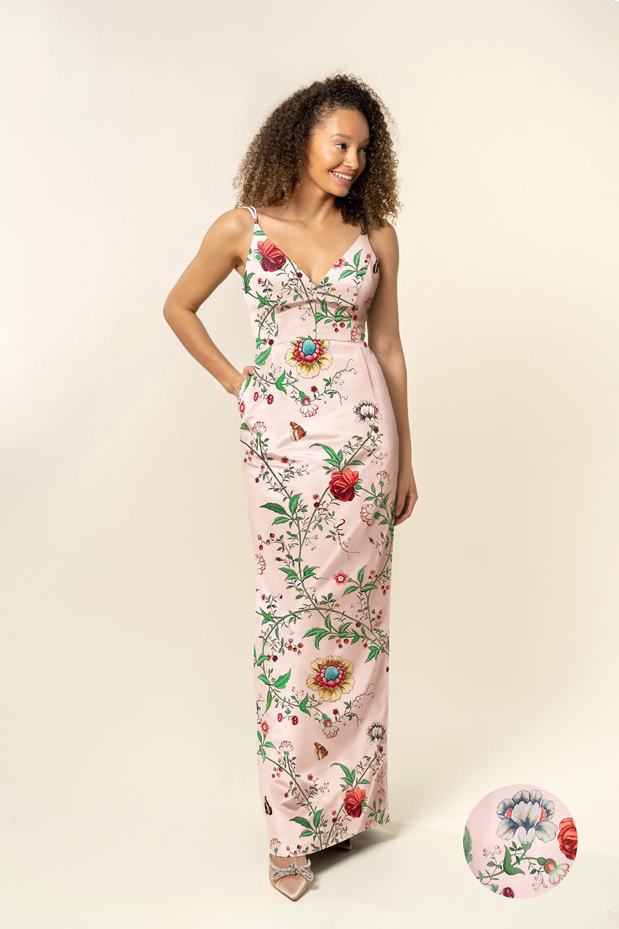 Henley Bodice With Brunch Skirt Long in Floral Vine Sateen