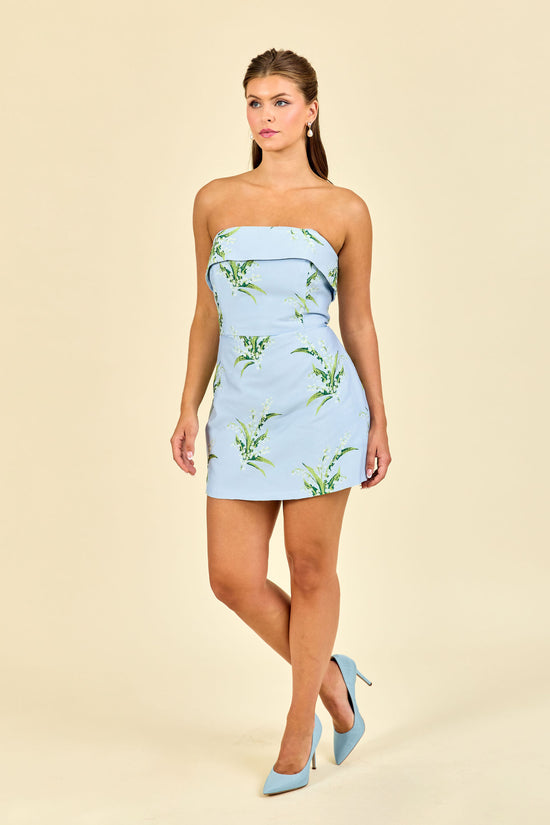 - Photographed in Powder Blue Lily of the Valley Jacquard.