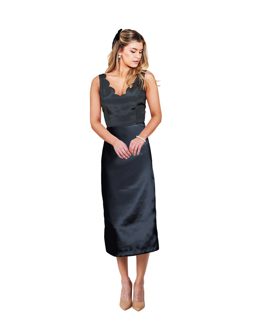 Audrey Bodice with Straight Skirt Midi in Floral Vine Sateen