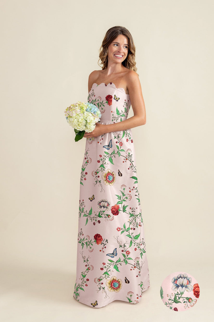 Hayes Bodice with Brunch Skirt Floor in Floral Vine Sateen
