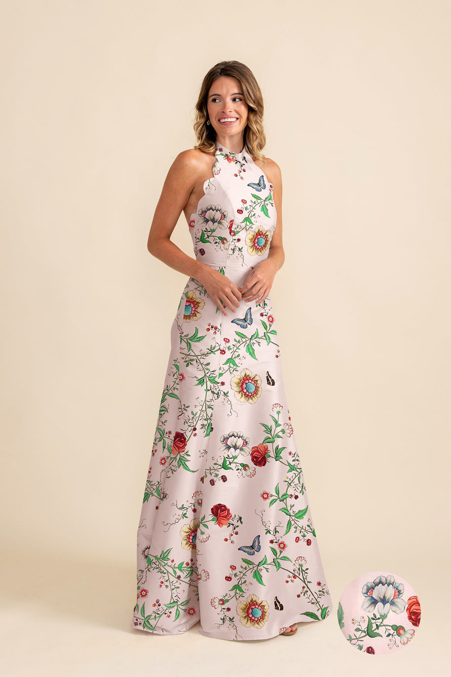 Margot Bodice with Trumpet Skirt in Floral Vine Sateen