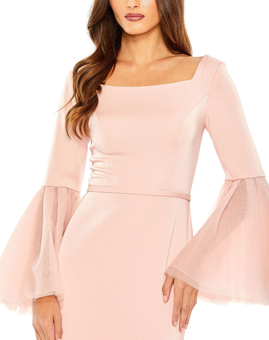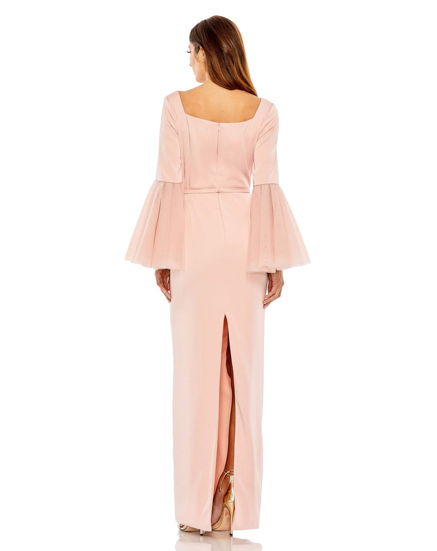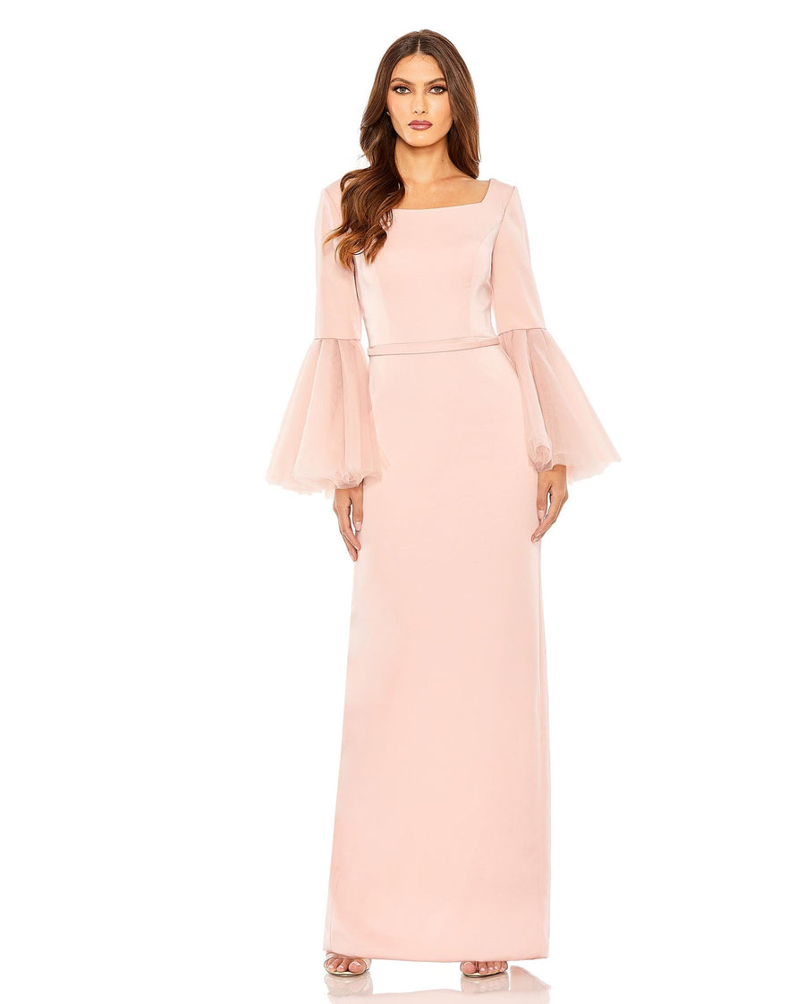 FLOUNCE SLEEVE SQUARE NECK COLUMN GOWN