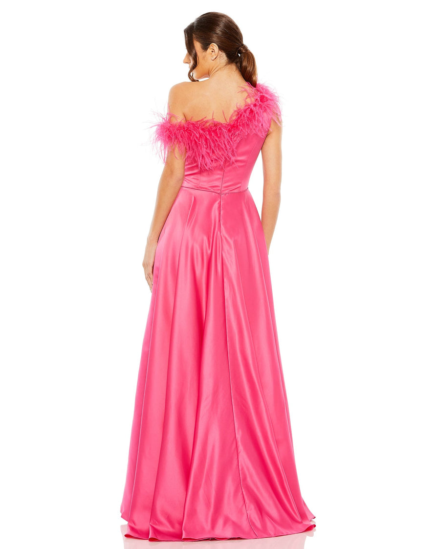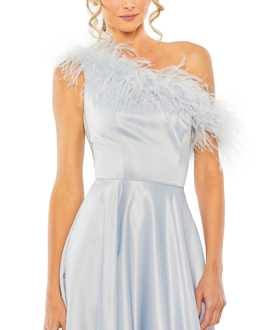 • Feather trim neckline