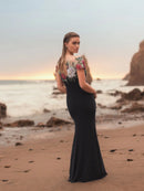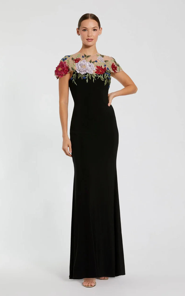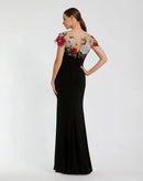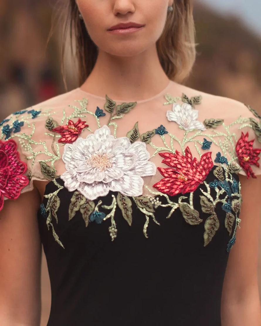 FLORAL EMBELLISHED JERSEY FITTED GOWN
