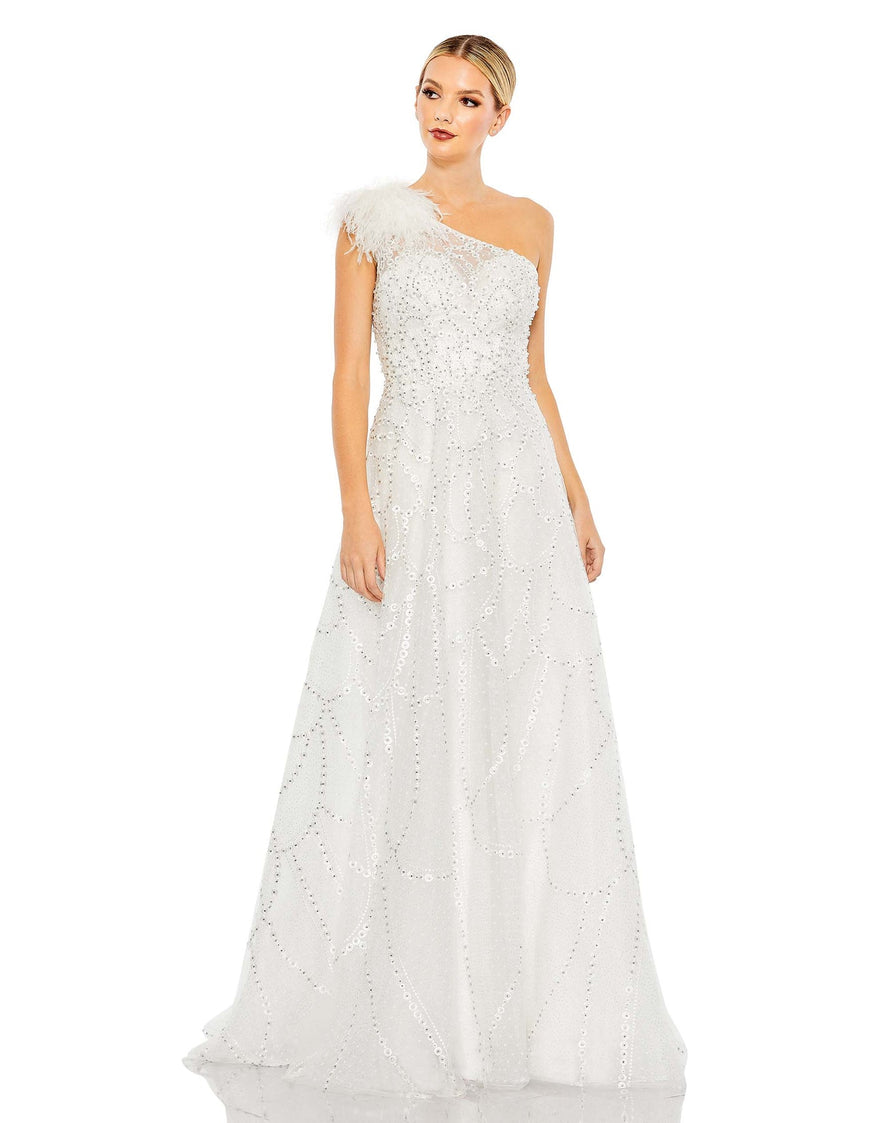 EMBELLISHED ONE SHOULDER A LINE GOWN