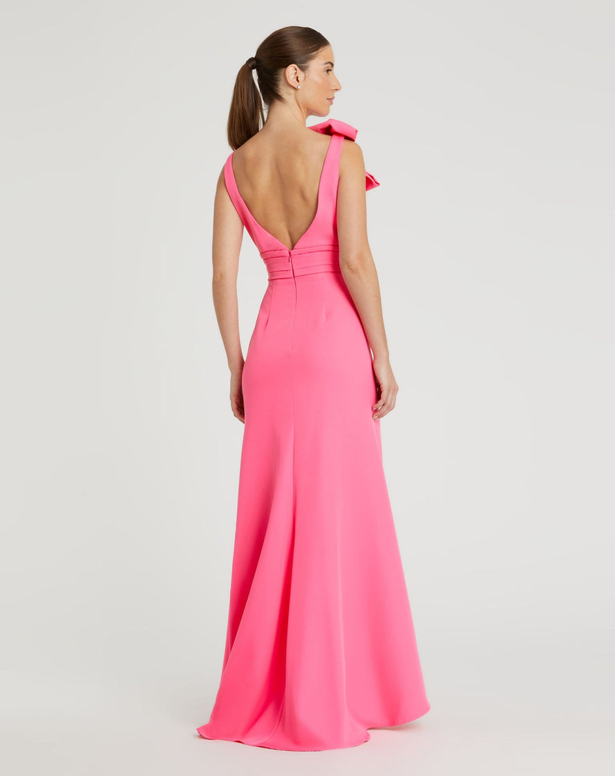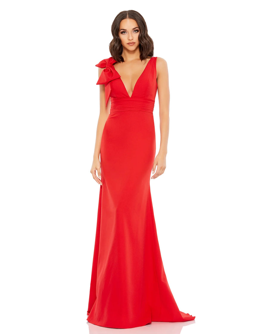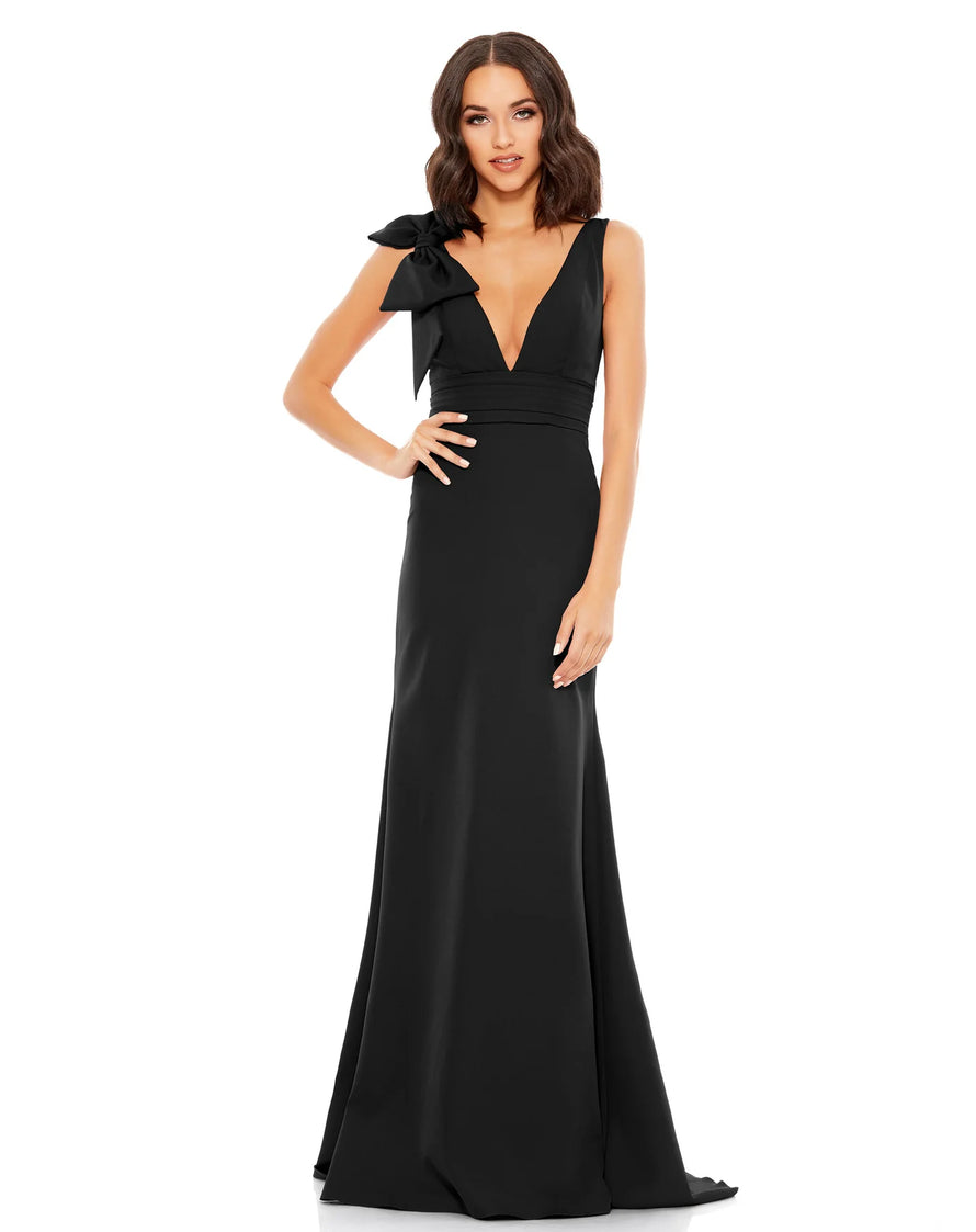 BOW SHOULDER V-NECK GOWN