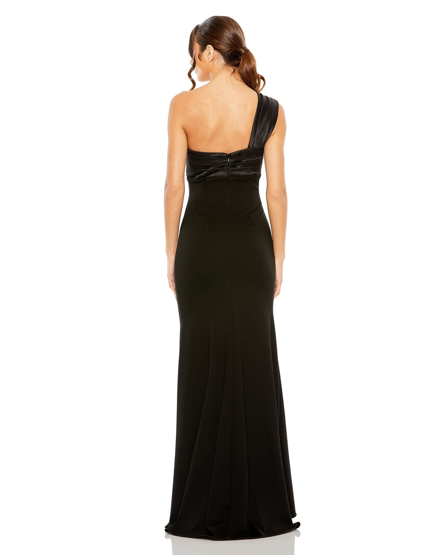 • Pleated satin bodice