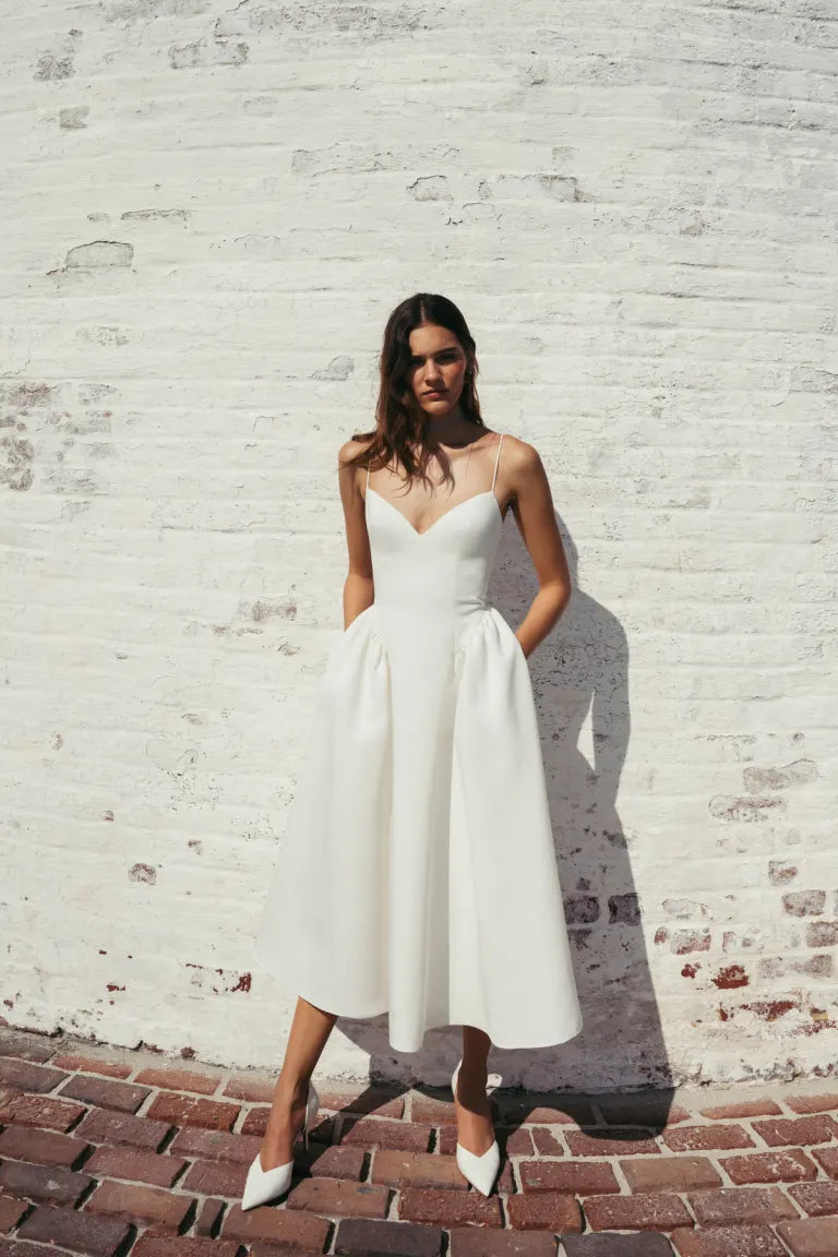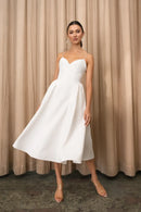 The Luella dress adds thoughtful seam details to a classic silhouette. Cut in our classic luxe faille, she features delicate spaghetti straps, a flattering deep sweetheart neckline, modified front drop waist, and flirty full skirt.