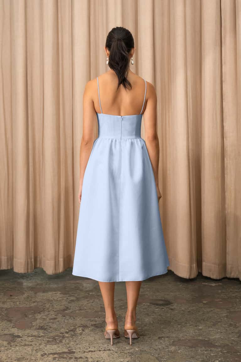 The Luella dress adds thoughtful seam details to a classic silhouette. Cut in our classic luxe faille, she features delicate spaghetti straps, a flattering deep sweetheart neckline, modified front drop waist, and flirty full skirt.