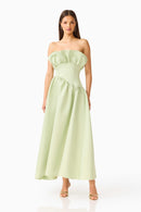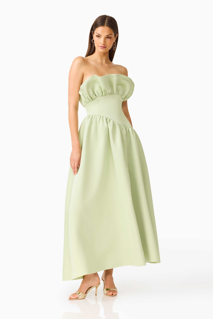 The Laurel Sleeveless Maxi in Light Sage is a masterclass in serene, botanical-inspired sophistication. Defined by a sweeping A-line silhouette and a romantic structured ruffle at the bust, this floor-length gown offers a seamless blend of timeless grace and modern, organic charm. Thoughtfully designed with detachable straps, it transitions effortlessly from a supportive halter to a sleek strapless look. Finished with an invisible back zip for a flawless fit, the Laurel in this muted, earthy hue is a quintessential choice for the outdoor wedding guest or an effortlessly elegant bridesmaid.