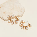 These mixed medium hoops showcase an architectural-inspired design, incorporating elements like blush pearls, sequins, and intricate details. Encased in a 18K gold-plated brass frame, we affectionately refer to these as our "cool-girl pearls." Undoubtedly, you'll discover yourself reaching for them frequently, making them a staple in your collection.