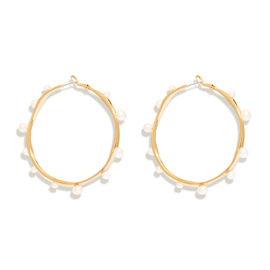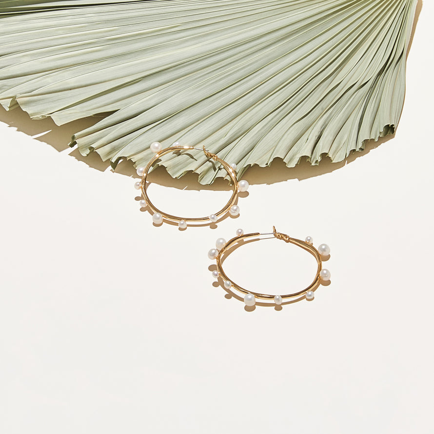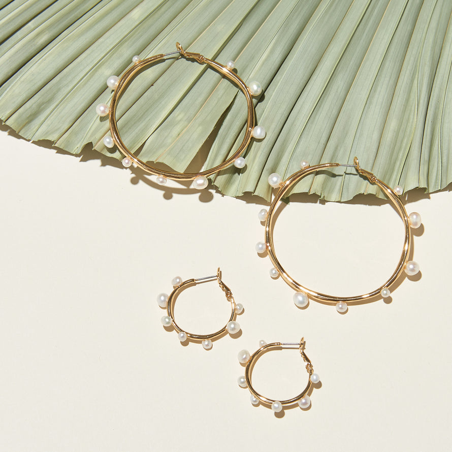 A representation of modern femininity, these sculptural hoops feature asymmetrical organic freshwater pearls, each with a bespoke quality. Lightweight and easy to wear, these 14k gold plated brass hoops affixed on a stainless steel post add a touch of elegance to your daily ensemble.