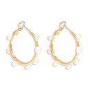 The Mini Isla Pearl Hoop features delicate 14k gold plated brass hoops adorned with freshwater pearls on a stainless steel post that are simple and elegant.