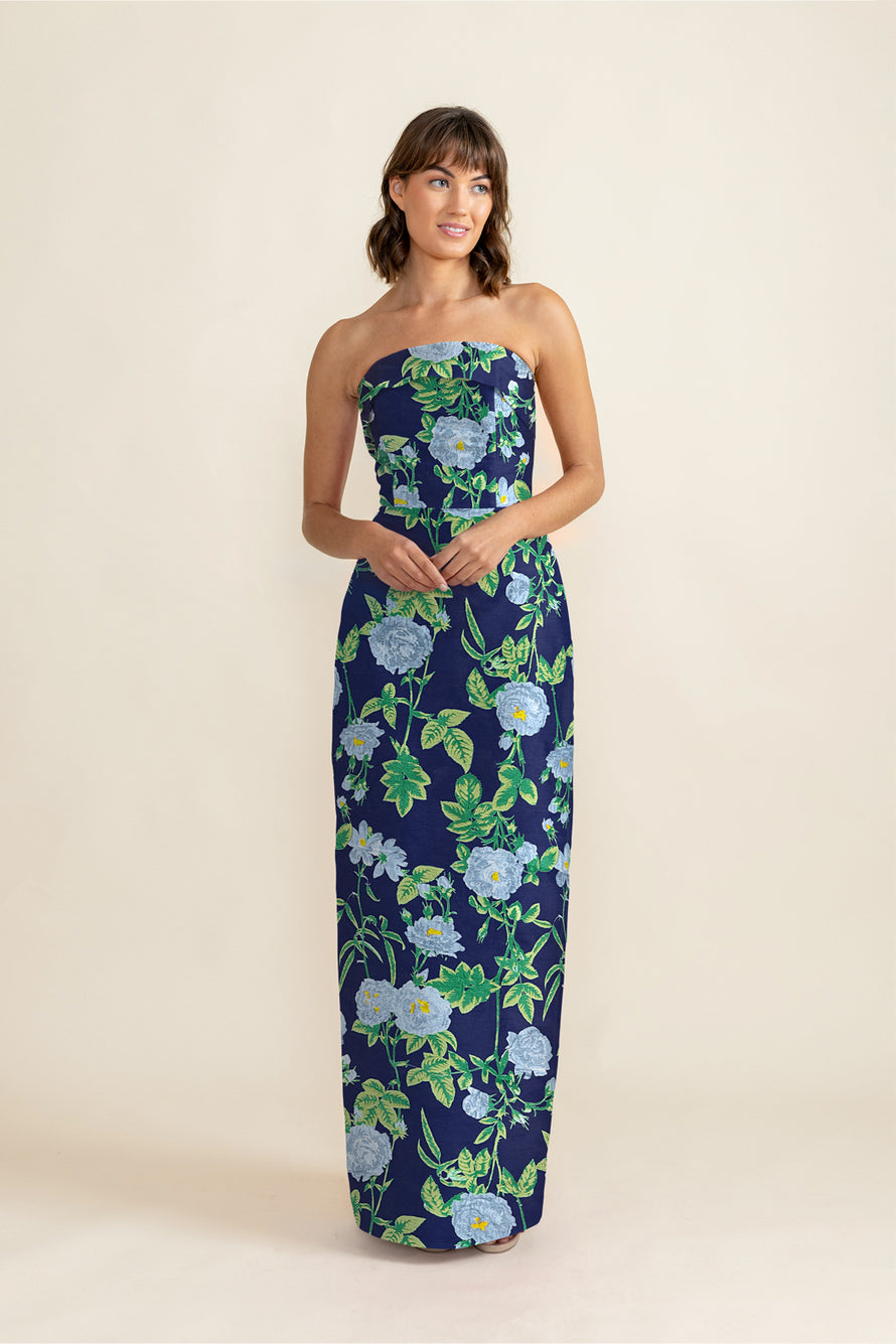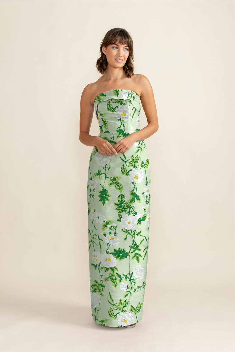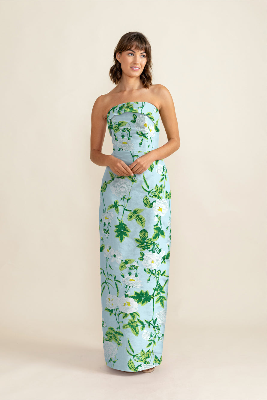 Eva Bodice with Straight Skirt in Camellia Jacquard