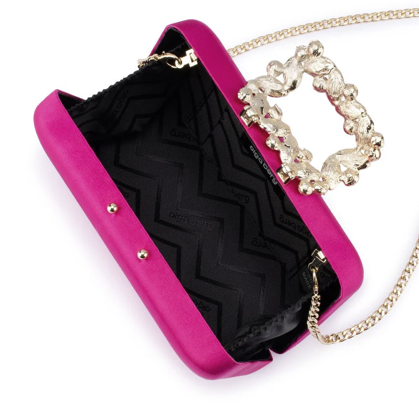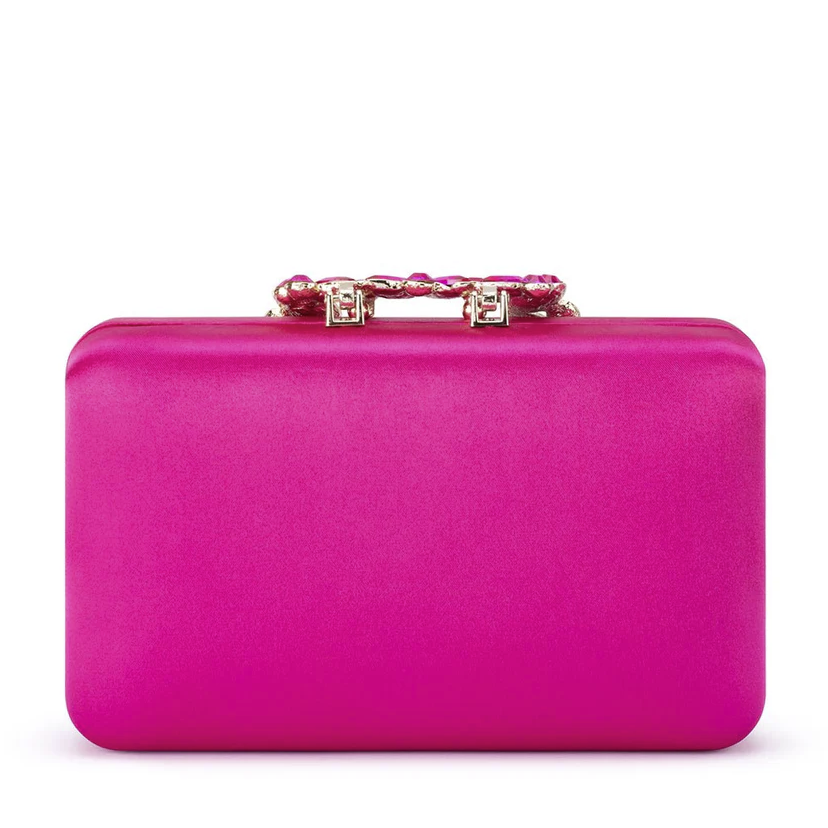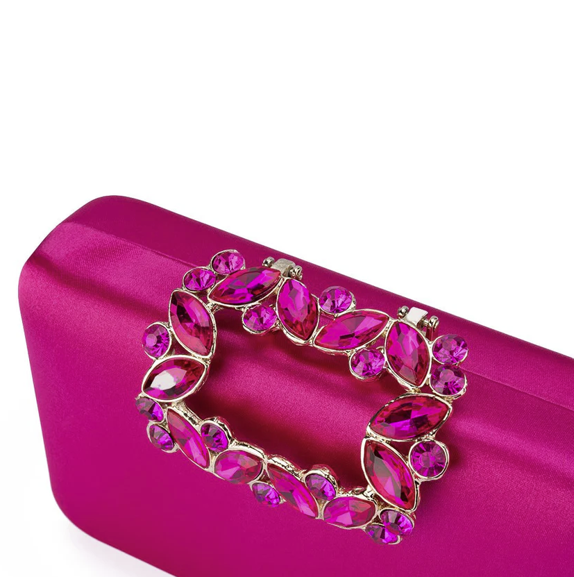 The MARGALIT Crystal Trimmed Clutch features a stunning embellished closure making it the perfect addition to any evening look. Carry in the palm of your hand or use the optional shoulder chain to go hands free.