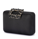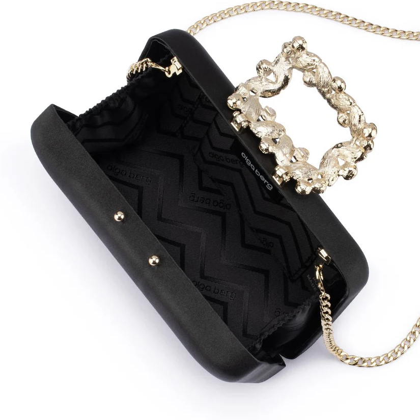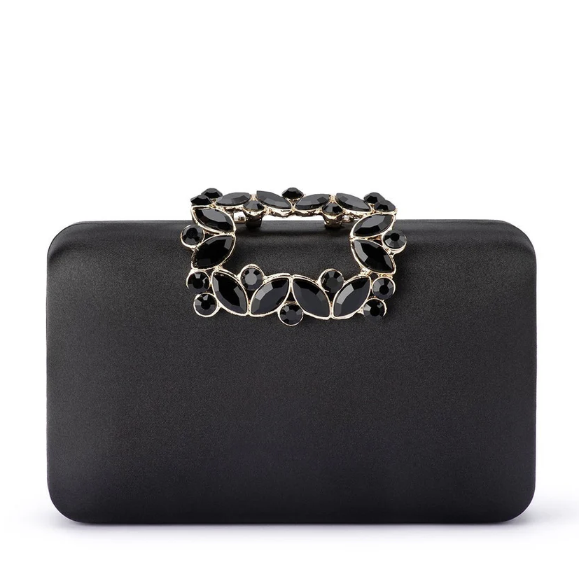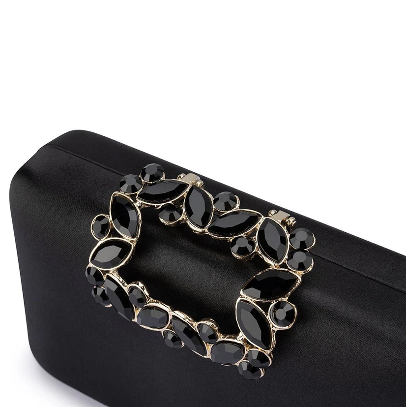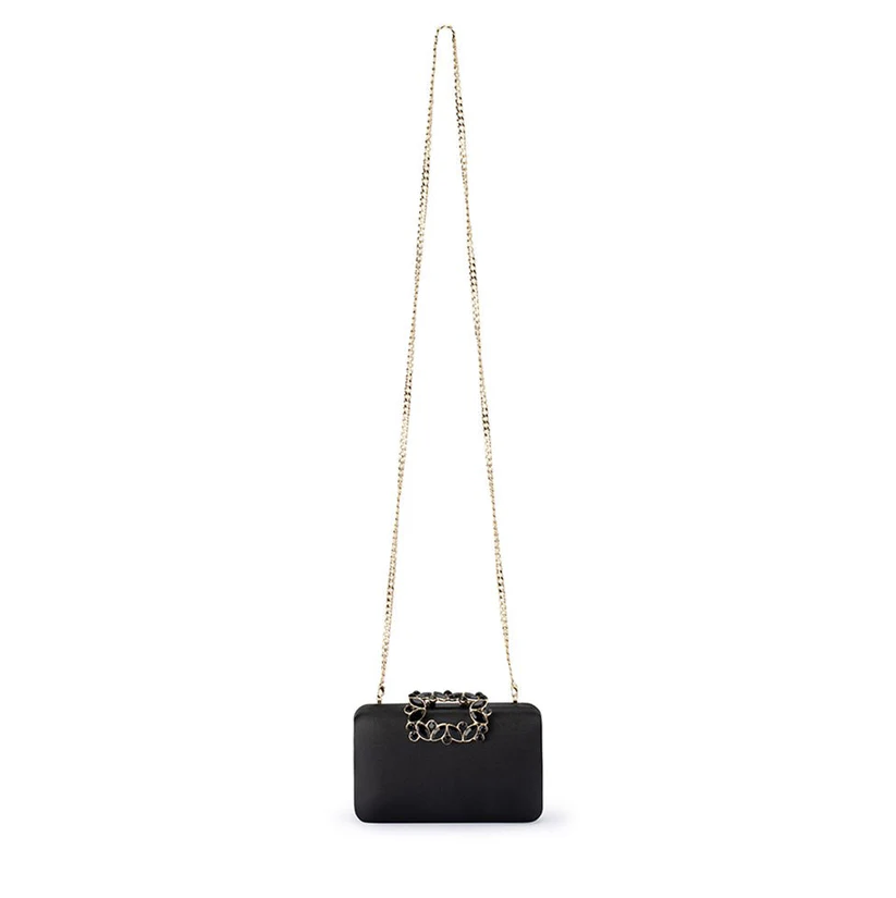 The MARGALIT Crystal Trimmed Clutch features a stunning embellished closure making it the perfect addition to any evening look. Carry in the palm of your hand or use the optional shoulder chain to go hands free.