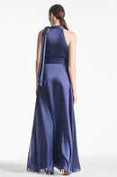 The Kayla maxi dress features a self-tie neckline, embodying a blend of simplicity and romantic charm and a pleated waistband at the natural waist to flatter your figure. This elegant deep cobalt dress is designed to be worn frequently and enjoyed to its fullest.
